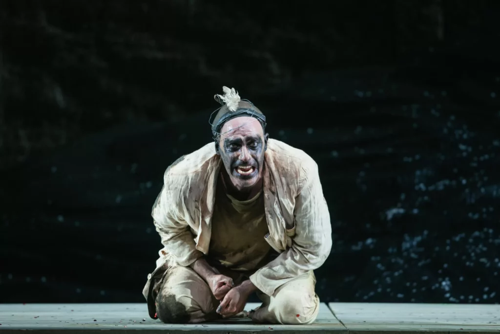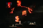 Visuellement, il faut toutefois composer avec les impératifs du Manège des rochers. Pas de proscenium, de coulisses ni même de rideau de scène. Un décor unique avec uniquement quelques accessoires scéniques pouvant être déplacés d’une scène à l’autre. Dans sa proposition visuelle, outre les éléments physiques du décor sur le plateau ainsi que les parois sculptées à même le Mönchsberg, le metteur en scène peut toutefois également compter sur huit écrans mobiles indépendamment les uns des autres, pour projeter des vidéos des personnages mais également des visuels descriptifs visant à enrichir les éboulis de lave refroidie, le tout avec un esthétisme particulièrement léché.