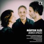 Bowed Spaces. Márton Illés (°1975) : Vont-tér pour violon et orchestre de chambre ; skEtch 1 à 3 pour violon et électronique ; Rajzok I pour orchestre à cordes ; Sírt-tér pour violoncelle et orchestre de chambre. Patricia Kopatchinskaja, violon ; Nicolas Altstaedt, violoncelle ; Münchener Kammerorchester, direction Clemens Schuldt et Bas Wiegers ; SWR Experimentalstudio. 2021 à 2024. Notice en allemand, en anglais et en français. 76’ 33’’. Alpha 1221.