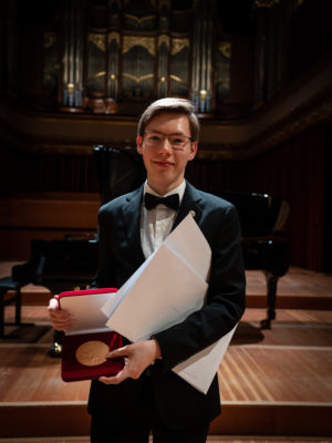 Intervient ensuite Roman Fediurko, âgé de dix-huit ans, natif de Kiev résidant à Graz, lauréat du Concours Horowitz pour groupe junior en 2016. Il présente le célèbre Concerto en la mineur op.54 de Robert Schumann, en lançant avec intrépidité le redoutable enchaînement d’accords du début à la précision extrême, alliant la poésie la plus délicate à la houle des arpèges déferlant sous un legato intense. Soutenu par la profondeur des basses, chaque segment mélodique est distillé en une sonorité magnifique qui rend le jeu perlé et la cadenza intimiste. Et le trille, d’une rare perfection, débouche naturellement sur une coda toute en finesse. L’Intermezzo médian cultive les contrastes d’expression pour parvenir à une transition en touches vaporeuses amenant un Allegro vivace, plus extérieur, qui étire les phrases sinueuses à fleur de clavier avec une limpidité confondante qui semble parfaitement naturelle.