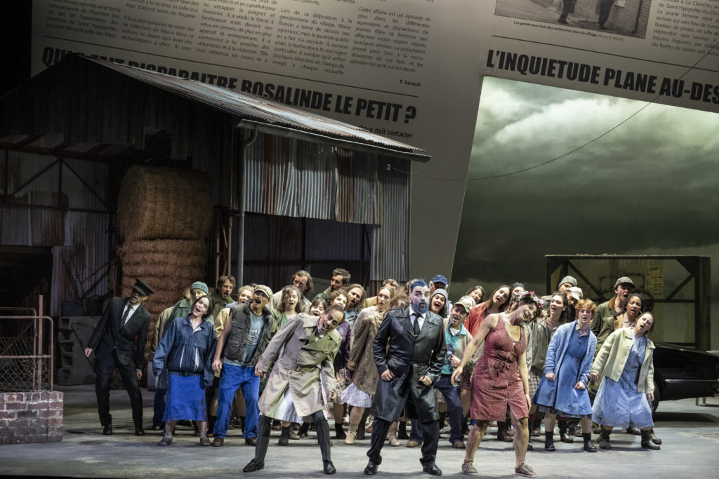 Pour l’Opéra National de Lyon, Laurent Pelly avait conçu en juin 2019 une production intelligente avec la complicité d’Agathe Mélinand pour l’adaptation des dialogues et la collaboration de Chantal Thomas pour les décors, de Joël Adam pour les lumières, alors que lui-même élaborait les costumes. Proposé à Marseille, à Lyon une seconde fois, le spectacle est repris à Lausanne pour la quatrième fois. Et Laurent Pelly lui-même vient le remonter en l’adaptant à une scène plus exiguë. En bénéficient les chanteurs dont les dialogues sont mieux perçus par les spectateurs qui s ébaudissent de leurs mimiques et de leurs pitreries. De la complexité du livret d’Henri Meilhac et de Ludovic Halévy nous montrant l’allégeance du Sire de Barbe-Bleue à son suzerain, le roi Bobèche, il dénoue les ficelles pour situer dans le monde campagnard d’aujourd’hui une intrigue qui fait de Barbe-Bleue un véritable prédateur sexuel éliminant chacune de ses épouses pour faire place à une nouvelle compagne, mais qui se pique d’un brin de culture en disant de la Boulotte dévergondée : « C’est un Rubens ! », sans pouvoir mettre un frein à sa délirante nymphomanie. Tout aussi cocasse s’avère le couple du roi Bobèche et de la reine Clémentine, empêtré dans les rigueurs de l’étiquette que tenteront de préserver le Comte Oscar, courtisan en chef, et Popolani, l’inénarrable alchimiste. Que dire de la pétulante Fleurette courtisée par ce dadais maladroit de Saphir, avant d’être reconnue comme Hermia, la fille perdue du roi, que l’on emmènera au palais sur un char de foin en forme de baldaquin ?  Comment ne pas se gausser des courtisans pliant l’échine ou de la scène du baise-main où Boulotte commettra un esclandre tapageur ou de son pseudo-assassinat dans les caveaux où se sont terrées les cinq autres femmes que Popolani avait plongées dans un sommeil léthargique sans les occire ? Il faut simplement constater qu’en cette quatrième reprise les rouages de la mise en scène sont bien huilés et que le spectateur ne s’ennuie pas une seconde, emporté qu’il est par cet enchaînement de situations invraisemblables.