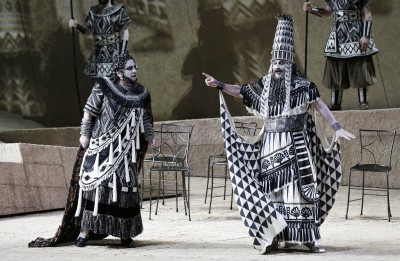 Si je n’ai pas vraiment goûté le travail de Davide Livermore dans Il Turco in Italia, c’est par contre avec plaisir que j’ai revu sa mise en scène de Ciro in Babilonia déjà présenté ici en 2012. Pour ce « dramma con cori », en fait le premier opera seria du jeune Rossini, Livermore choisit de présenter le spectacle comme un film muet en noir et blanc des années 1910. D’une part, un public vêtu de costumes d’époque assiste à la projection du film et s’intègre petit à petit à l’action du drame biblique (le banquet sacrilège de Belshazzar, la conquête de Babylone par le jeune Cyrus et l’amour de Belshazzar pour Amira, la femme de Cyrus) et d’autre part, Babylone est évoquée sur le mode des films d’antan, avec les costumes, tiares, perruques, barbes et décorations « authentiques », une touche 1910 et un jeu d’acteurs adapté à l’esthétique de l’époque (décors et lumières de Nicolas Bovey, videodesign D-Wok, et costumes de Gianluca Falaschi. Cette formule originale marche encore toujours et elle offre pleinement aux chanteurs l’occasion de donner vie à leurs personnages et de défendre leurs parties vocales exigeantes. La grande contralto polonaise Eva Podles est de retour pour assumer le lourd rôle de Ciro qu’elle chante encore avec une grande assurance, sa voix de bronze et sa virtuosité vocale. Le public l’acclame longuement, indifférent au fait qu’elle ne puisse plus, physiquement, faire croire au vaillant guerrier. Amira a l’allure royale, la beauté, l’émotion, la voix homogène et expressive aux coloratures étincelantes de Pretty Yende. Antonino Siragusa offre à Baldassare (Belshazzar) une voix de ténor plutôt serrée, au timbre assez monochrome, mais souple et capable de grande virtuosité. Bonne prestations aussi d’Isabella Gaudi (Argene) et Alessandro Luciano (Arbace). Jader Bignamini dirige les chœurs et l’orchestre de Teatro Communale di Bologna dans une exécution plein de dynamisme, soutient les chanteurs et donne à la partition la possibilité de révéler ses multiples facettes.