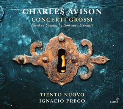 Charles Avison (1709-1770) : Concertos in seven parts done from the Lessons of Domenico Scarlatti : no 5 en ré mineur, no 6 en ré majeur, no 9 en ut majeur, no 12 en ré majeur. Domenico Scarlatti (1709-1770) : Sonates K. 11 en ut mineur, K. 27 en si mineur, K. 87 en si mineur, K. 213 en ré mineur. Emmanuel Resche-Caserta, violon. Ensemble Tiento Nuovo, Ignacio Prego, clavecin & direction. Octobre 2020. Livret en espagnol, anglais allemand, français. TT 67’57. Glossa GCD 923526