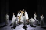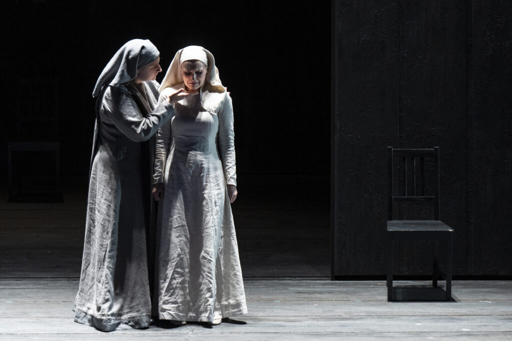 C’est pourquoi Olivier Py détache sa production du fait historique du 17 juillet 1794 où les seize religieuses du Carmel de Compiègne ont été décapitées sur l’actuelle Place de la Nation à Paris. Il la transpose dans ce XXe siècle marqué par les horreurs d’Auschwitz et d’Hiroshima. Comme il le notait dans le programme de salle du Théâtre des Champs-Elysées, il n’y a « nul besoin de guillotine pour sentir sur leur nuque et au fond de leur âme le couperet du monde matérialiste et agnostique, l’hiver et la nuit épouvantable d’un monde qui ne croit plus et ne connaît de lui-même que le dégoût et l’effroi ».
