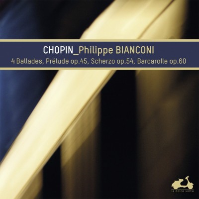 Ballade n°1 en sol mineur, op. 23 - Ballade n°2, en fa majeur, op. 38 - Prélude en ut dièse mineur, op. 45 - Ballade n°3 en la bémol majeur, op. 47 - Ballade n°4 en fa mineur, op. 52 - Scherzo n°4 en mi majeur, op. 54 - Barcarolle en fa dièse majeur, op. 60. Philippe Bianconi, piano. 2014-DDD-63'56''-Texte de présentation en français, anglais, japonais et allemand - 1 CD La dolce volta LDV 14