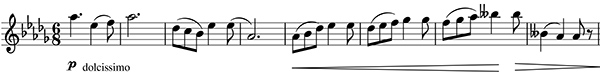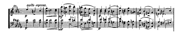 Mes. 21 à 24, env. 1'03''. "Si on pouvait deviner un fond de féerie dans le début de ce mouvement, cette féerie se fait à présent active dans cette dentelle finement tissée aux bois, avec le ronronnement sonore d'un petit moulin à musique" (A. Lischke)
