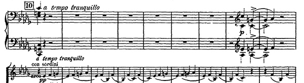 Il s'ouvre et se conclut par des cadences du piano, ponctuées seulement par quelques pizzicati des cordes.