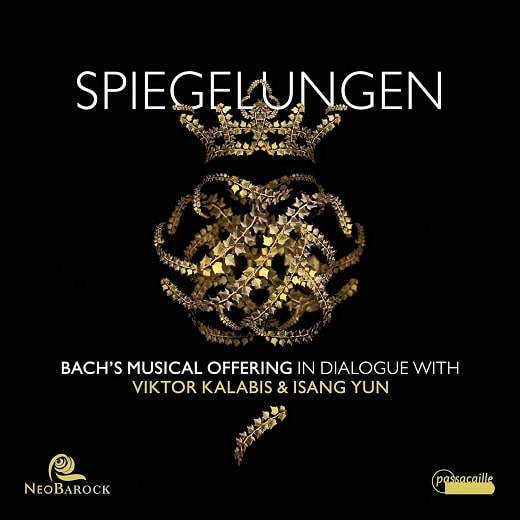 Spiegelungen. Johann Sebastian Bach (1685-1750) : Musikalisches Opfer BWV 1079. Viktor Kalabis (1923-2006) : Šest Dvouhlasých Kánonických Invencí Pro Cembalo Op. 20. Isang Yun (1917-1995) : Königlisches Thema für violine solo. NeoBarock. Jan De Winne, flûte traversière. Maren Ries, Anne von Hoff, violon, alto. Nazar Kozhukhar, viole de gambe. Stanislav Gres, clavecin. Livret en français, anglais, allemand. Juillet 2024. 74’35’’. Passacaille PAS 1148