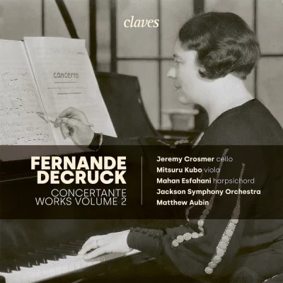 Fernande Decruck (1896-1954) : Concerto pour violoncelle et orchestre ; Les Trianons, suite pour clavecin et orchestre ; Sonate en ut dièse pour saxophone (ou alto) et orchestre ; Les clochers de Vienne : Suite de Valses. Jeremy Crosmer, violoncelle ; Mahan Esfahani, clavecin ; Mitsuru Kubo, alto ; Jackson Symphony Orchestra, direction Matthew Aubin. 2023. Notice en anglais. 64’ 46’’. Claves Records 50-3108.