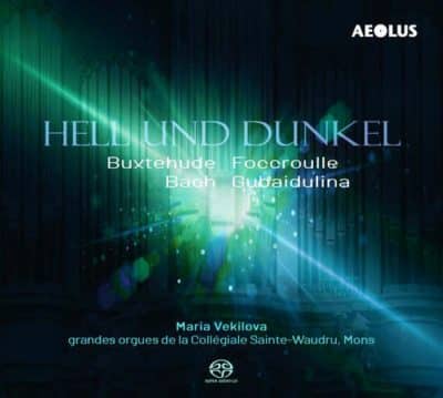 Hell und Dunkel. Dietrich Buxtehude (1637-1707) : Magnificat primi toni BuxWV 203 ; Praeludium en fa dièse mineur BuxWV 146 ; Wie schön leuchtet der Morgenstern BuxWV 223. Johann Sebastian Bach (1685-1750) : Christ lag in Todesbanden ; Fantaisie et Fugue en sol mineur BWV 542. Bernard Foccroulle (*1953) : Toccata. Sofia Goubaïdoulina (*1931) : Hell und Dunkel. Maria Vekilova, orgue de la collégiale Sainte-Waudru de Mons. Livret en allemand, anglais. Avril 2022. TT 66’09. SACD Aeolus AE-11361
