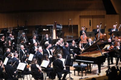 La soirée s’ouvrait avec Grand Bazar de Fazil Say, donné en première à Monaco. Courte et percussive, cette mise en bouche captait immédiatement l’attention par ses rythmes foisonnants et ses couleurs chatoyantes. Sous la baguette précise et énergique de Lio Kuokman, l’Orchestre Philharmonique de Monte-Carlo transformait la partition en un prélude ludique et spectaculaire, préparant idéalement l’oreille à la suite du programme.