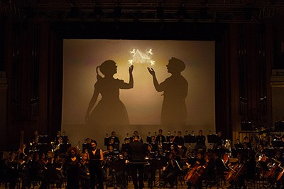 La forêt d'Ilsenstein, les fraises, les ballets, les pains d'épice, le chant du coucou, la maison de sucre et chocolat, la fée, la sorcière, deux enfants qui dansent et s'amusent, la misère du quotidien, le marchand de sable, la magie du rêve,... tout est réuni pour un conte de Noël que le compositeur allemand mit en musique à la demande de sa soeur qui venait d'écrire un recueil de textes d'après le conte Hänsel et Gretel des frères Grimm. D'autant plus que le recueil d'Adelheid Wette est fortement édulcoré, dépouillé de ses passages par trop cruels. C'est le Palais des Beaux-Arts qui cette fois accueillait La Monnaie dans son année "hors les murs". Aussi fallait-il adapter la mise en scène de l'oeuvre pour théâtre de marionnettes devenue opéra-conte. Peter de Caluwe avait fait appel au collectif Manuel Cinema de Chicago qui proposait un théâtre d'ombre : un grand écran en fond de scène sur lequel se projettent en ombres les lieux sur lesquels se détachent les profils des acteurs en action; une sorte de dessin animé d'ombres chinoises techniquement mis au point par des procédés cinématographiques de de pointe, tout cela "en direct". Une totale réussite quant à la façon dont l'image se calque sur la musique ; une parfaite mise en place. Une totale réussite aussi quant à l'esprit donné au chef-d'oeuvre d'Humperdinck qui rejoint ici sa vocation initiale de théâtre de marionnettes magnifié par la finesse des découpes des ombres -craquants le petit nez levé tout droit vers le ciel, les ronds blancs des yeux!