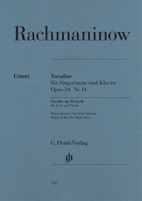 Trois ans après la parution de son recueil de 13 Mélodies op. 34 en 1912, Rachmaninov y ajouta une dernière petite pièce ne comportant pas de texte: la Vocalise, un morceau, dont la célébrité et la popularité allaient bientôt reléguer au second plan les autres mélodies. Depuis sa création en 1916, cette pièce au ton mélancolique et expressif a fait l’objet d’un nombre impressionnant d’arrangements; Rachmaninov lui-même en réalisa un pour orchestre et voix et un pour orchestre seul. Henle propose dans son édition Urtext la version originale pour soprano et piano en se fondant sur les sources autographes conservées au musée Glinka de Moscou. Une particularité de cette édition est l’insertion de la partie vocale séparée, qui est non seulement utile aux chanteurs, mais donne également la possibilité à tout instrumentiste intéressé de jouer la partie de soliste originale de la pièce (HN 1237).