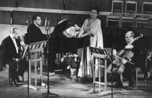 Crédits photographiques : Tommy Persson et Olga Rakhalskaya. Légendes : Weinberg dans son studio de travail vers 1965 et Weinberg avec David Oistrakh, Msitslav Rostropvich et Galina Vishnevshkaya lors de la création des Sept Romances sur des Poèmes de Alexander Blok, Op.127, Conservatoire de Moscou le 23 octobre 1967. Les photographies de Weinberg ont été fournies par Tommy Persson.