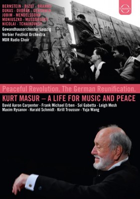 Le premier est consacré à trois documentaires : "The Paceful Revolution and the German Reunification", "Two Cities - One Maestro", "Dicovery Masterpieces" qui résument en quelque sorte les jalons de la vie de Kurt Masur, chantre de la paix et de la musique. Car son rôle fut immense dans l'Allemagne de 1989, offrant son nom et sa renommée -il pouvait voyager à l'étranger comme haut représentant de la culture communiste- aux Lipsiens en les menant à une révolution pacifique sous les voûtes de l'église Saint-Nicolas alors que 70.000 personnes étaient menacées de mort par les para-militaires du régime. Aujourd'hui encore le peuple lui est reconnaissant; il suffit de voir combien le saluent et lui parlent dans les rues de la ville de Saxe marquante dans l'histoire musicale. Dès l'ouverture de la RDA à l'Ouest, il lui fut proposé un rôle politique dans l'Allemagne de la réunification -n'y avait-il pas eu un précédent en Pologne avec Ignace Paderewski qui fut Premier Ministre de Pologne pendant la Grande Guerre. "Quelle déchéance" lui dira Clémenceau- mais il préféra poursuivre sa voie dans la musique. Fin des années 1970, Kurt Masur avait utilisé son nom et son aura auprès de Honecker pour faire construire le superbe nouveau Gewandhaus à l'acoustique exemplaire qui, depuis 1981, fait face à l'opéra.