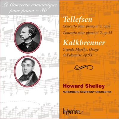 Thomas Dyle Acland Tellefsen (1823-1874) : Concertos pour piano et orchestre n° 1 en sol mineur op. 8 et n° 2 en fa mineur op. 15. Friedrich Wilhelm Michael Kalkbrenner (1785-1849) : Grande marche interrompue par Un Orage et suivie d’une Polonaise. Howard Shelley, piano et direction ; Orchestre Symphonique de Nuremberg. 2022. Notice en anglais, en français et en allemand. 75’ 56’’. Hyperíon CDA68345.