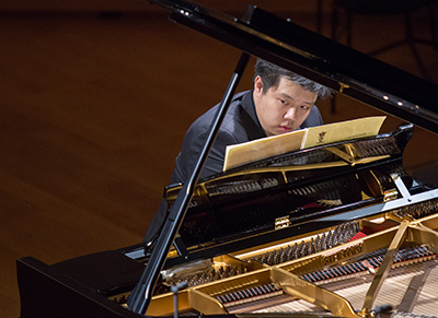 Ouvrant cette quatrième soirée de la finale du Concours, Larry Weng (28 ans, Chine-Etats-Unis) aborde l’imposé de Claude Ledoux dans un style qu’on qualifiera de costaud et à poigne.