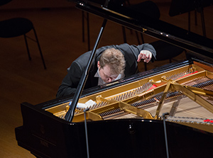 C’est sans peur qu’il aborde le Troisième Concerto de Rachmaninov. Penché sur le piano, la tête dans les épaules, ce géant débonnaire fait preuve dès le début d’une virtuosité aisée et sans contrainte. Est-ce l’avantage de l’expérience plus grande, mais il joue comme au concert, sans volonté délibérée d’éblouir mais en se faisant plaisir (et à nous aussi), offrant un jeu toujours clair qui se joue des terribles difficultés de la partition, sauf peut-être dans la colossale cadence du premier mouvement, enlevée avec panache mais où la sonorité jusqu’ici magnifique se dégrade par moments dans les graves. Dès le retour de l’orchestre, Vondracek se livre à un véritable travail d’orfèvre en accompagnant les soli des vents. Le mouvement lent le voit faire preuve de sensibilité et de dignité, évitant tout recours au sentimentalisme ou à la larmoyance. Même dans les passages en accords les plus exigeants, le son n’est jamais pâteux, mais toujours d’une belle clarté et magnifiquement égal. Dans le Final, Vondracek impressionne par sa légèreté et son sens de la mesure: rien n’est jamais exagéré et il se refuse heureusement à toute recherche de l’effet.