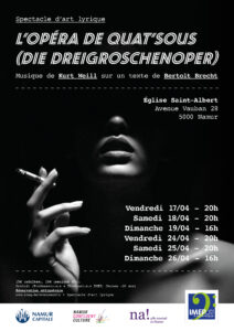 Spectacle d'art lyrique à l'IMEP de Namur : L’Opéra de quat’sous (Die Dreigroschenoper) de B. Brecht et K. Weill