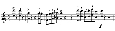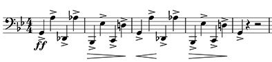 Pesante. Les vents et cordes ouvrent bruyamment le mouvement par une formule cadentielle persistante,