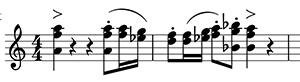Main gauche de la partie de piano (tout le long de l'énoncé du thème). Remarquez la mesure 12/8.