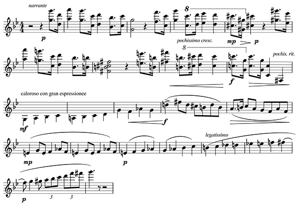 Mes. 13 env. 0'55''. "caloroso con gran espressione". Suite du thème que l'on peut considérer comme sa seconde partie.