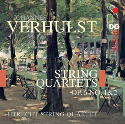 Qui est Johannes Verhulst? Compositeur tombé dans la disgrâce, il est né à La Haye aux Pays-Bas en 1816 et meurt à Bloemendaal en 1891. Artiste majeur et sans doute le plus apprécié de son pays, il est formé à l’Ecole Royale de Musique de La Haye. Sa rencontre avec Mendelssohn fut capitale : sur invitation de ce dernier, Verhulst part à Leipzig pour y suivre des études « supérieures ». Egalement chef d’orchestre, il rencontre à Leipzig Robert Schumann qui lui dédia, après l’écoute du Quatuor n°2, son opus 52 (Ouverture, scherzo et Finale). Schumann considérait hautement l’œuvre du compositeur hollandais : « Le quatuor n’a rien du flegme que l’on reproche si souvent à ses compatriotes. Au contraire, il est d’un grand naturel musical et plein de verve, une verve qui dans une forme aussi complexe ne se maîtrise qu’avec beaucoup d'efforts ». Tenant quelques positions importantes (directeur des Concerts Felix Meritis, directeur musical de la section de Rotterdam de la Société pour la Promotion de la musique…), Verhulst n’était pas un ardent défenseur de la musique moderne de son temps. Son refus de présenter des œuvres d’un Berlioz ou d’un Wagner mit fin à sa carrière. C’est ainsi que l’Utrecht String Quartet nous fait redécouvrir la musique de chambre passionnante du compositeur hollandais. Verhulst n’est pas avare en dynamiques et contrôle l’orientation de la forme générale avec maturité. Ce ne sont pas des Quatuors de circonstance mais bien des chefs-d’œuvres tant le foisonnement harmonique, rythmique et mélodique les rend passionnants. Le Quatuor Utrecht saisit cette énergie constante avec facilité et produit un enregistrement de haut vol. Le Quatuor n°1 (en quatre mouvements) comporte quatre énergies, quatre couleurs parfaitement homogénéisées. Plus moderne dans l’écriture, le Quatuor n°2 (en quatre mouvements également) travaille davantage sur l’ampleur des phrases dans un contexte tonal plus complexe. L’Adagio sostenuto est sans doute le mouvement le plus touchant tant la construction thématique et le souffle bouleversent l’auditeur. Mélodies séduisantes, parfois suaves, dialogue efficace entre les instruments, rythmique entraînante (même dans les mouvements lents), voilà les caractéristiques de l’œuvre de Verhulst, parfaitement interprétée ici et mise sur disque sans aucun artifice par la firme MDG. Reste à enregistrer le Quatuor n°3. A découvrir !