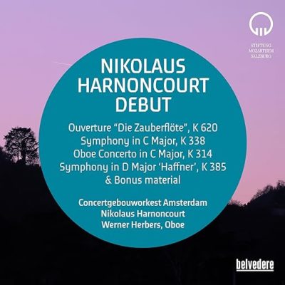 Wolfgang Amadeus Mozart (1756-1791) : Ouverture de la Flûte enchantée ; Symphonie n°34 en Ut majeur, K.338 ; Concerto pour hautbois en Ut majeur, K.314 ; Symphonie n°35 “Haffner” en Ré majeur, K.385. Werner Herbers, hautbois ; Orchestre du Concertgebouw d’Amsterdam, Nikolaus Harnoncourt. Bonus : répétitions de la Symphonie n°25 en Sol mineur, K.183. Camerata Salzbourg, Nikolaus Harnoncourt. 1980 & 2006. Livret en anglais et allemand. BVE08071.