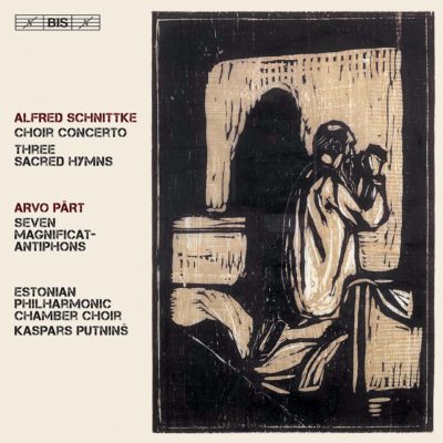 Alfred Schnittke (1934-1998) : Concerto pour chœur ; Trois Hymnes sacrées, pour chœur mixte. Arvo Pärt (°1935) : Sept Antiphones du Magnificat, pour chœur mixte. Chœur de chambre philharmonique estonien, direction Kaspars Putniņš. 2020. Notice en anglais, en allemand et en français. Textes en russe avec traduction anglaise (Schnittke) et en allemand avec traduction anglaise (Pärt). 60'22''. SACD BIS-2521.
