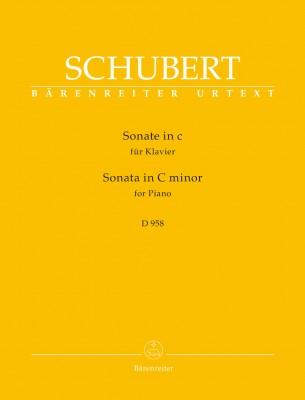 La Grande Sonate en ut mineur D. 958 de Schubert a été composée 1828, quelques mois avant sa mort, à la même époque que les Sonates D. 959 et D. 960. Ensemble, elles forment un héritage schubertien essentiel. L'édition critique de Walburga Litschauer est basée sur l'édition Urtext de la « Neuen Schubert-Ausgabe ». Outre la qualité de la gravure, l'édition donne d'importantes notes d'interprétation (en allemand et en anglais) concernant le legato, le jeu de pédales, les accents, la dynamique, les staccato, les portato,... De plus, les esquisses de Schubert pour les quatre mouvements de la sonate sont consultables via le site Bärenreiter. (BA 10869)