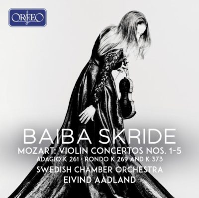 Wolfgang Amadeus Mozart (1756-1791) : Concertos pour violons no 1-5, K. 207, 211, 216, 218, 219. Adagio en mi majeur K. 261 ; Rondo en si bémol majeur K. 269 ; Rondo en ut majeur K. 373. Baiba Skride, violon. Eivind Aadland, Orchestre de Chambre de Suède. Octobre 2019. Livret en allemand, anglais. Orfeo C997201 (2 CDs)