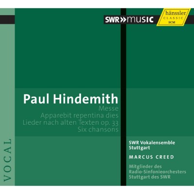 Le compositeur de Mathis der Maler est mis à l’honneur dans cette nouvelle parution d’Hänssler classic. Disque consacré aux œuvres vocales d’Hindemith, on y découvre le travail architectural et de balance qui lui sont chers. Compositeur qui n’use pas encore du dodécaphonisme, son écriture reste moderne avec une touche d’ancienneté, mise en avant par l’utilisation de textes anciens. Après une longue fanfare percutante par sa rythmique engagée, le chœur rentre dans l’Apparebit repentina dies un peu comme dans l’œuvre chorale de Dallappicola : accents, dissonances, contrastes de nuances saisissants. Le SWR Vokalensemble Stuttgart rend cela avec une précision surprenante alors que les vents jouent avec justesse. Le texte médiéval en latin se fait aussi apprécié même lorsque les voix du chœur mixte se mêlent au point de ne plus comprendre la structure. Il arrive que l’on dise qu’Hindemith ennuie et pourtant il suffit d’écouter cette pièce parlant du jugement dernier pour comprendre que cet avis est erroné. L’effet donné par les cuivres est si dramatique que cela nous frappe au plus haut point. Divisé en quatre parties distinctes pour 23 couplets, chaque section a son caractère propre et explore les caractéristiques du texte. Comme un dialogue, cette œuvre est un récit musical réussi et passionnant. Les Six Chansons qui suivent écrites quelques années plus tôt utilisent des textes anciens alors que c’est une période néfaste pour le compositeur et sa femme. Sa musique bannie de l’Allemagne nazie, il choisit alors d’écrire en 1939 six chansons sur des textes en Français de Rilke. A cappella, ces chœurs sont redoutables pour l’intonation et la justesse rythmique. Ce ne sera pas un problème pour Marcus Creed qui modèle ces chansons avec pertinence même si le texte ne sera pas toujours précis. En revanche, belle qualité d’intonation et de musicalité pour le chœur. De beaux légatos, une belle homogénéité et une précision remarquable pour la rythmique redoutable que l’on nomme Motorik. Le contrepoint d’Hindemith est formidable par sa richesse mélodique et son parcours harmonique étonnant. Les Lieder sur des textes anciens écrits dans les années 20 sont des madrigaux qui comportent chacun un texte d’un auteur différent (Martin Luther – Burggraf zu Regensburg – Spervogel – Henrich von Morungen – Reinmar – anonym) et qui sont relativement courts. Même caractéristiques que pour les autres pièces et le chœur semble plus à l’aise ici avec le texte allemand. Chaque lied a sa propre ambiance, son atmosphère créée par l’écriture du compositeur. Aucune difficulté pour le chef et ses musiciens de passer de l’un à l’autre et de rentrer avec justesse dans cette musique. Enfin, la Messe, œuvre la plus longue du disque et certainement la plus complexe, est loin de la Messe de Stravinsky et Hindemith semble avoir choisi ici plus d’apaisement et de douceur. Usant toujours d’un contrepoint formidable, on apprécie la facilité avec laquelle le chœur chante l’œuvre. Aucun souci d’intonation, des respirations convaincantes et une force incroyable pour ce qui est de la direction prise par le chef. Pour un chœur mixte à capella, il s’agit de la dernière œuvre du compositeur et aussi de sa seule œuvre liturgique. Réelle évolution de son langage, on retrouve ici des accords parallèles et une écriture si complexe que les chanteurs à l’époque lui ont demandé d’écrire une autre messe plus facile qui ne verra malheureusement jamais le jour.