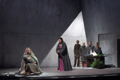 Commandée et créée en 2022 par l’Opéra d’Angers Nantes, en coproduction avec l’Opéra de Rennes et l’IRCAM, « L’annonce faite à Marie » est ici reprise avec les mêmes interprètes, Raphaële Kennedy (Violaine), Sophia Burgos (Mara), Els Janssens (Elisabeth), Marc Scoffoni (Anne), Charles Rice (Jacques), Vincent Bouchot (Pierre). Les solistes de l’ensemble intercontemporain sont sous la direction d’Ariane Matiakh.