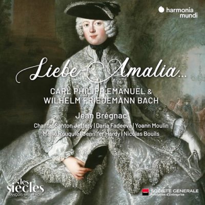 Liebe Amalia. Œuvres d’Anna Amalia de Prusse (1723-1787), Wilhelm Friedemann Bach (1710-1784), Carl Philipp Emanuel Bach (1714-1788), Johann Philipp Kirnberger (1721-1783). Jean Brégnac, flûte. Chantal Santon Jeffery, soprano. Daria Fadeeva, pianoforte, Yoann Moulin, clavecin, clavicorde. Marie Rouquié, violon. Jennifer Hardy, violoncelle. Nicolas Bouils, flûte.Décembre 2022. Livret en français, anglais, allemand ; paroles en langue originale et traduction trilingue. 77’48’’. Harmonia Mundi HMM 905378