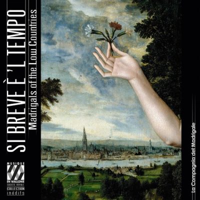 Si Breve è’l Tempo. Œuvres de Giovanni de Macque (c1550-1614), Peter Philips (c1560-1628), Andrea Gabrieli (1533-1585), Séverin Cornet (c1530-1582), Jean de Turnhout (c1550-1614), Andreas Pevernage (c1542-1591), Cornelis Verdonck (1563-1625), Luca Marenzio (1553-1599), Jean Desquesnes (fl. 1590), René del Mel (c1554-1598), Alessandro Striggio (1540-1592), Jean de Castro (c1540-c1600), Roland de Lassus (1532-1594), Giovanni Pierluigi da Palestrina (1525-1594). La Compagnia del Madrigale. Rossana Bertini, Francesca Cassinari, Alena Dantcheva, soprano. Elena Carzaniga, Annalisa Mazzoni, alto. Giuseppe Maletto, Raffaele Giordani, ténor. Guglielmo Buonsanti, Matteo Bellotto, basse. Livret en français, néerlandais, anglais, allemand ; paroles des chants en langue originale et traduction quadrilingue. Octobre 2023. 64’38’’. Musique en Wallonie MEW 2410