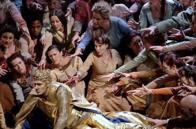 Sur scène, s’impose le Giacomo de Carlos Alvarez qui a la stature et les grands moyens du véritable baryton verdien, image du vieillard déchiré entre son amour paternel et sa conscience patriotique. Le ténor Francesco Meli cultive délibérément l’éclat du timbre pour dessiner un Charles VII voulant affermir sa légitimité, quand Dmitry Beloselskiy et Michele Mauro font ce qu’ils peuvent des personnages sacrifiés de Talbot et de Delil. Reste le cas d’Anna Netrebko qui s’investit totalement dans la composition de Jeanne d’Arc : à observer son impavidité notoire et son émission forcée, en possède-t-elle l’expression dramatique ? Il faut parvenir à la scène finale pour voir son phrasé s’iriser de quelques ‘pianissimi’ filés, appréciés au plus haut point après deux heures de sons outrageusement ouverts. En résumé, une ouverture de saison bien maussade sur la première scène d’Italie.