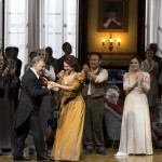 Si Wagner était fêté avec une réalisation scénique des « Meistersinger von Nürnberg », une version de concert de « Rienzi » et deux concerts avec le Siegfried Idyll et le premier acte de « Die Walküre », Verdi était commémoré avec des nouvelles productions de « Don Carlo » et « Falstaff », des versions de concert de « Giovanna d’Arco » et « Nabucco » et trois exécutions de sa Messa da Requiem . C’est Zubin Mehta qui dirigeait l’Orchestre Philharmonique de Vienne dans « Falstaff » et abordait la partition magistrale du vieux maître avec une main légère, faisant ressortir les subtilités orchestrales, guidant les chanteurs sans jamais les couvrir et achevant des ensembles homogènes et pleins d’élan. Le metteur en scène Damiano Michieletto a situé l’action de nos jours dans la Casa di Riposo per Musicisti créée par Verdi et fait de Falstaff un chanteur qui triomphait jadis dans ce rôle et rêve de sa gloire d’antan. Tous les personnages de l’opéra de Verdi, habillés comme au temps du compositeur, entrent et sortent par les fenêtres du home et se mêlent aux pensionnaires. Cela donne parfois des images émouvantes quand par exemple le couple des jeunes amoureux Nannetta et Fenton est confronté avec un couple âgé qui se retrouve avec tendresse. Mais en général, le va-et- vient constant est plus tôt dérangeant et prête à confusion. En plus le décor unique, la salle de séjour de la Casa Verdi, n’est pas idéal pour évoquer les différents lieus d’action de l’opéra. Donc, par exemple, pas de panier à linge pour cacher Falstaff et le jeter ensuite à la Tamise. La fin de l’opéra est plein de mélancolie, non seulement quand le vieux chanteur regarde les photos de son album de souvenirs et est confronté avec la mort. Mais finalement c’est avec une vraie joie de vivre qu’il entame la fugue finale « Tutto nel mondo è burla ». Ambrogio Maestri a le physique idéal et la voix bien ronde pour Falstaff. Les joyeuses commères de Windsor sont interprétées avec charme et des voix fraîches par Fiorenza Cedolins (Alice), Eleonora Buratto (Nannetta), Stephanie Houtzeel (Meg) en Elisabeth Kulman (une Quickly hors du commun). Massimo Cavalletti (Ford) commande le phalange des messieurs avec une voix puissante et Javier Camarena est un Fenton vocalement élégant.