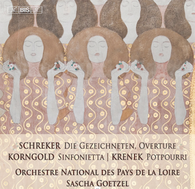 Franz Schreker (1878-1934) Ouverture de l'opéra Die Gezeichneten ; Erich Wolfgang Korngold (1897-1957) : Sinfonietta, op. 5 ; Ernest Krenek (1900-1991) : Potpourri, op. 54. Orchestre National des Pays de la Loire, Sascha Goetzel, direction. 2024. Livret en : anglais, allemand, français. : 71'21''. BIS-2722
