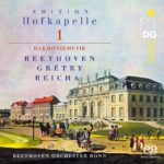 Edition Hofkapelle 1. Harmoniemusik. Ludwig van Beethoven (1770-1827) : Octuor pour vents en mi bémol majeur, Op. 103 ; Sextuor pour vents en mi bémol majeur, Op. 71 ; Rondino en mi bémol majeur, WoO 25. André-Ernest-Modeste Grétry (1741-1813) : Richard Cœur-de-Lion, Suite no 2 [arrgmt Franz Ehrenfried]. Joseph Reicha (1752-1795) : Sextuor pour vents en mi bémol majeur. Lorenzo Coppola, Bonner Hofkapelle (membres de l’Orchestre Beethoven de Bonn). Keita Yamamoto, Suzanne van Zoelen Lucker, hautbois. Hans-Joachim Mohrmann, Florian Gyssling, clarinette. Daniel Lohmüller, Rohan Richards, cor naturel. Yuto Suzuki, Henning Groscurth, basson. Frank Geuer, contrebasse. Livret en anglais, français, allemand. Janvier et mai 2021. TT 72’17. SACD MDG 938 2250-6