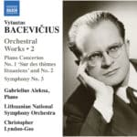 Vytautas Bacevičius (1905-1970) : Concertos pour piano et orchestre n° 1 « sur des thèmes lituaniens » op. 12, et n° 2 op. 17 ; Symphonie n° 3 op. 33. Orchestre symphonique national de Lituanie, direction Christopher Lyndon-Gee. 2021. Notice en anglais. 74’ 38’’. Un CD Naxos 8.574414.