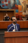 Rendez-vous à l’hémicycle du Parlement européen au Kirchberg-Luxembourg ! Telle est la consigne ces jours-ci pour les amateurs d’opéra. Une délocalisation qui surprend d’abord, mais qui prend vite tout son sens. Le livret de En vertu de…, l’œuvre représentée, est en effet un collage de différents articles de la Convention européenne des Droits de l’Homme. Une proposition étonnante, mais musicalement accomplie dans la partition d’Eugène Birman, interprétée par un baryton, une flûtiste, un clarinettiste, un saxophoniste et la cheffe d’orchestre. Le compositeur a, dans une partition aux tonalités contrastées et conjuguées, magnifiquement réussi à restituer les réactions fortes nées de la découverte de textes juridiques évolutifs. Ensuite, les spectateurs rejoignent sans tarder le studio du Grand Théâtre pour y découvrir le deuxième volet du diptyque : Der Kayser von Atlantis de Viktor Ullmann ou l’histoire d’un empereur dont une décision tyrannique suscite une réaction radicale de la Mort : elle se met en grève.