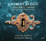 Charles Avison (1709-1770) : Concertos in seven parts done from the Lessons of Domenico Scarlatti : no 5 en ré mineur, no 6 en ré majeur, no 9 en ut majeur, no 12 en ré majeur. Domenico Scarlatti (1709-1770) : Sonates K. 11 en ut mineur, K. 27 en si mineur, K. 87 en si mineur, K. 213 en ré mineur. Emmanuel Resche-Caserta, violon. Ensemble Tiento Nuovo, Ignacio Prego, clavecin & direction. Octobre 2020. Livret en espagnol, anglais allemand, français. TT 67’57. Glossa GCD 923526