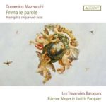Prima le parole. Domenico Mazzocchi (1592-1665) : Uscite à mille, à mille ; Passacaglie Dialogo à tré ; Di marmo siete voi ; Verginelle ; O tempeste ; Aprite il seno ; Lidia ti lasso, O Dio ; Chiudesti i lumi ; Hor che gli armenti ; Sù da’monti ; Pian piano ; Hor che sepolto ; Dolci godete ; Oh se podeste mai [Madrigali a cinque voci, Roma, 1638]. Les Traversées Baroques, direction Étienne Meyer. Capucine Keller, Dagmar Šašková, Anne Magouët, soprano. Maximiliano Baños, alto. Vincent Bouchot, François-Nicolas Geslot, ténor. Renaud Delaigue, Alejandro Meerapfel, basses. Béatrice Linon, violon. Judith Pacquier, cornet, direction artistique. Liselotte Emery, cornet, flûte à bec. Monika Fischalek, basson, flûte à bec. Marion Martineau, Christine Plubeau, viole de gambe. Matthias Spaeter, théorbe. Magnus Andersson, théorbe, guitare. Giovanna Pessi, harpe. Laurent Stewart, clavecin, orgue. Livret en anglais, français, allemand ; paroles et traduction trilingue. Octobre 2021. TT 52’39. Accent ACC 24384
