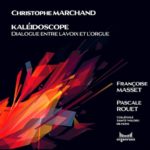 Kaléidoscope. Dialogue entre la voix et l’orgue. Christophe Marchand (*1972) : Cuncti Simus Concanentes ; Nun komm der Heiden Heiland ; O Lamm Gottes unschuldig ; Vater unser im Himmelreich ; Sonate kaléidoscopique ; Pietà ; Pièces brèves (Esquisse, Échappée belle, Sous un ciel d’azur, Clin d’œil) ; Le Livre de Jérôme Bosch (Genèse, Chute, Prière, Enfer). Françoise Masset, voix. Pascale Rouet, orgue. Livret en français, anglais. Août 2021. TT 74’03. Organroxx ORG 06