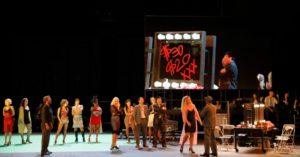 Quant à Ivo van Hove, pour mettre en scène l’épopée de Grandeur et décadence de la ville de Mahagonny de Kurt Weill et Bertolt Brecht, il n’a pas hésité à en rajouter. L’œuvre, qui développe ce que son titre annonce, abonde en effet en protagonistes et en comparses : huit personnages principaux, six personnages féminins nécessaires à l’atmosphère générale de dépravation, et un chœur bien fourni. Van Hove leur a adjoint quinze figurantes et figurants. Et surtout, il recourt à toute une panoplie de procédés techniques. De la vidéo traditionnelle, omniprésente, à des séquences de « capture-motion » (des personnages réels sont filmés devant un fond vert. Sur un écran, ils apparaissent incrustés dans un décor). Il faut évidemment maîtriser tout cela, ce qui n’est pas sans difficulté : technique, comme l’autre soir où un écran s’est montré réticent, ou de fluidité des déplacements et des enchaînements. Mais c’était une toute première.