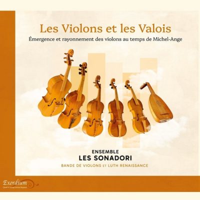 Les violons et les Valois. Œuvres de Pierre Attaingnant éd. (c1494-c1552), Johannes Stokhem (c1445-1487), Francesco da Milano (1497-1543), Costanzo Festa (c1485-1545), Thomas Créquillon (1505-1557), Vincenzo Capirola (1474-p1548), Pierre de La Rue (c1460-1518), Johannes Tinctoris (c1435-1511), Gaspar van Weerbeke (c1445-1516), Jacob Obrecht (c1457-1505), Hayne van Ghizeghem (c1445-c1497), Jacob Clemens non Papa (c1510-c1555), Johannes Ghiselin (c1455-c1507), Jacques Moderne éd. (c1495-p1561), Tielman Susato éd. (c1510-c1570), Cristobal Morales (c1500-1553). Les Sonadori. Béatrice Linon, soprano de violon, violon exilande. Odile Edouard, soprano de violon. Nicolas Sansarlat, contralto de violon. Alain Gervreau, ténor de violon. Sarah van Oudenhove, bassetto. Pascale Boquet, luth, guiterne.Octobre 2024. Livret en français, anglais. 70’23’’. Exordium EX20250005