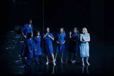 Dans un contexte de sécheresse et de manque d’eau potable, le Liceu semble s’être excusé d’avoir baigné les artistes dans un fond d’eau. Ils ont utilisé les couches phréatiques sous le théâtre pour ne pas abonder dans le gaspillage. C’est d’un effet visuel et sonore curieux : d’une part, il nous transporte vers un monde sombre et onirique, comme la captivité émotionnelle de Katerina, mais d’autre part, il n’aide pas à la projection des voix. Les vieux théâtres à l’italienne avaient toujours le plancher incliné vers la bouche de scène, ce qui soutenait la projection des voix car le plancher en bois réfléchit très bien le son vers le plafond et ensuite sur tout le public. La technologie actuelle permet toute sorte de variantes, mais pas l’eau, qui exige la planéité parfaite et gomme une partie des résonnances vocales. Il n’y a pas eu non plus de coproduction avec d’autres maisons d’opéra, alors que quatre versions différentes de Lady Macbeth sont annoncées cette saison en Europe. C’est désolant qu’une production de telle envergure artistique (et coût…) n’ait pu trouver d’autres partenaires.